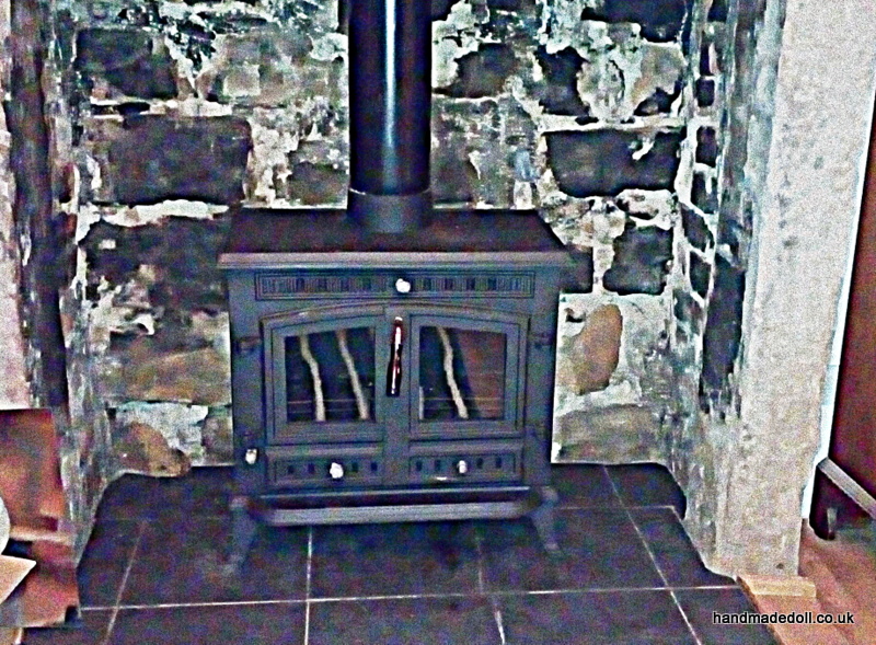 The wood burner has been fitted. It is done. Our new mulitfuel burner is in place for Christmas. This is our Christmas present this year really. The piles of stuff I have "hidden" down in the cellar are besides the point in comparison to having this installed.